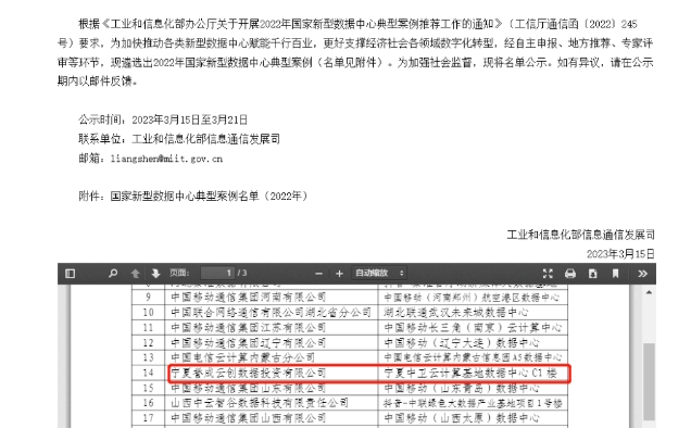 3月16日,工信部發(fā)布《2022年國家新型數(shù)據(jù)中心典型案例》公示名單,由寧夏譽成云創(chuàng)數(shù)據(jù)投資有限公司投建的“中衛(wèi)云計算基地數(shù)據(jù)中心 C1 樓”成功獲評“國家新型數(shù)據(jù)中心(大型數(shù)據(jù)中心)典型案例”,這是美利云中衛(wèi)數(shù)據(jù)中心榮獲“2022年度‘?dāng)?shù)字產(chǎn)業(yè)高質(zhì)量發(fā)展’優(yōu)秀案例”后,在數(shù)字經(jīng)濟綠色高質(zhì)量發(fā)展中所扮演的典范角色再次得到認可。