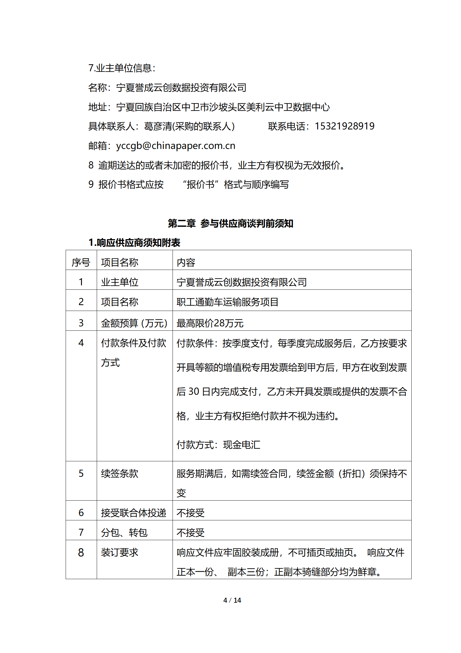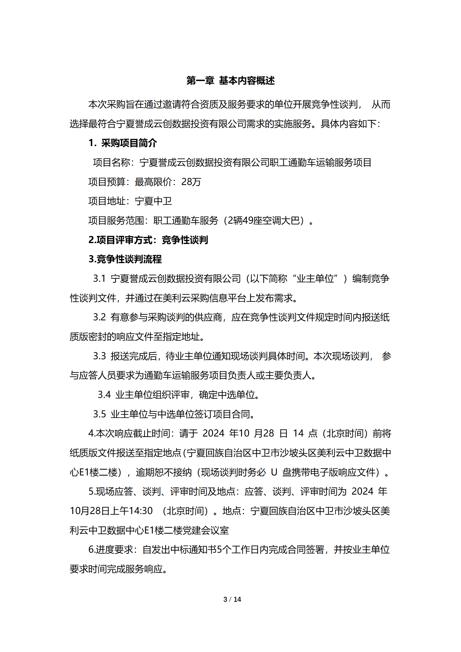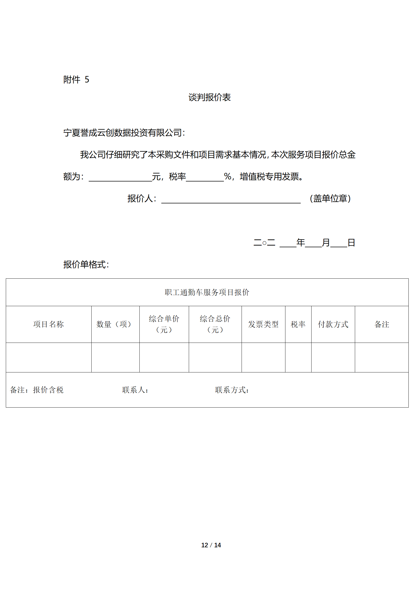 寧夏譽成云創數據投資有限公司現采購職工通勤車服務,詳細采購信息參見附件詢價文件。詢價人:寧夏譽成云創數據投資有限公司